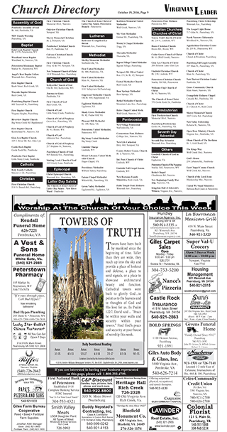 A very nice weekly newspaper in Pearisburg, VA and an example of an attractive Black & White page with a free Church Directory.